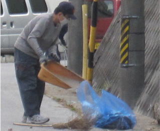 会社周辺道路の清掃活動を実施しています。特に雨水溝のつまり防止は、全従業員がこだわりを持って清掃しています。